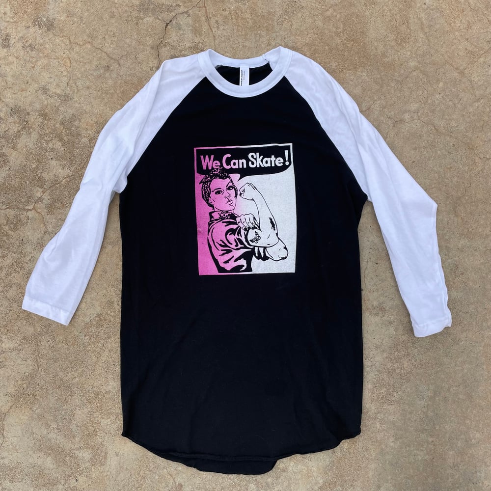 Super soft, quarter length baseball tee featuring the "Rosie Revamped" graphic in a Pink & White gradient.